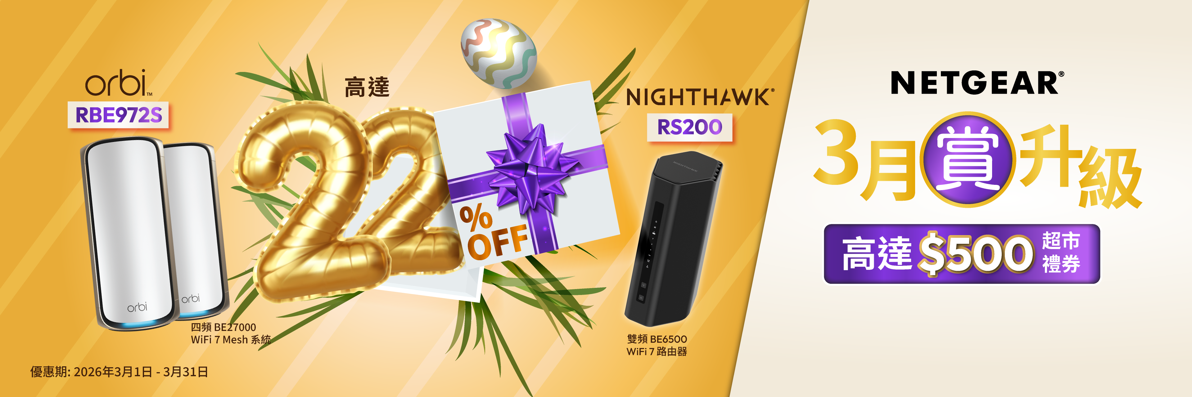 四頻 BE27000 WiFi 7 Mesh 無線系統 (2件裝) - 送 1 年 NETGEAR Armor