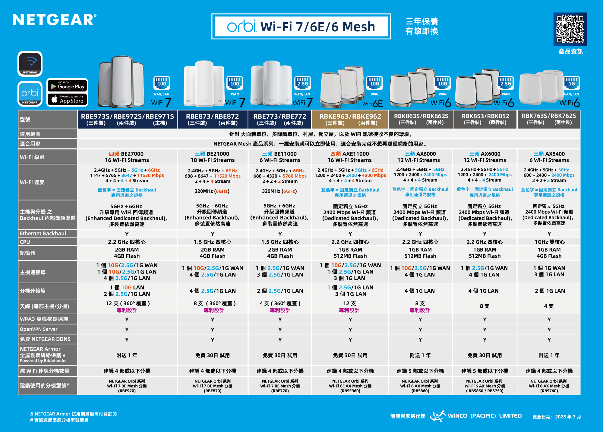 四頻 BE27000 WiFi 7 Mesh 無線系統 (3件裝) - 送 1 年 NETGEAR Armor