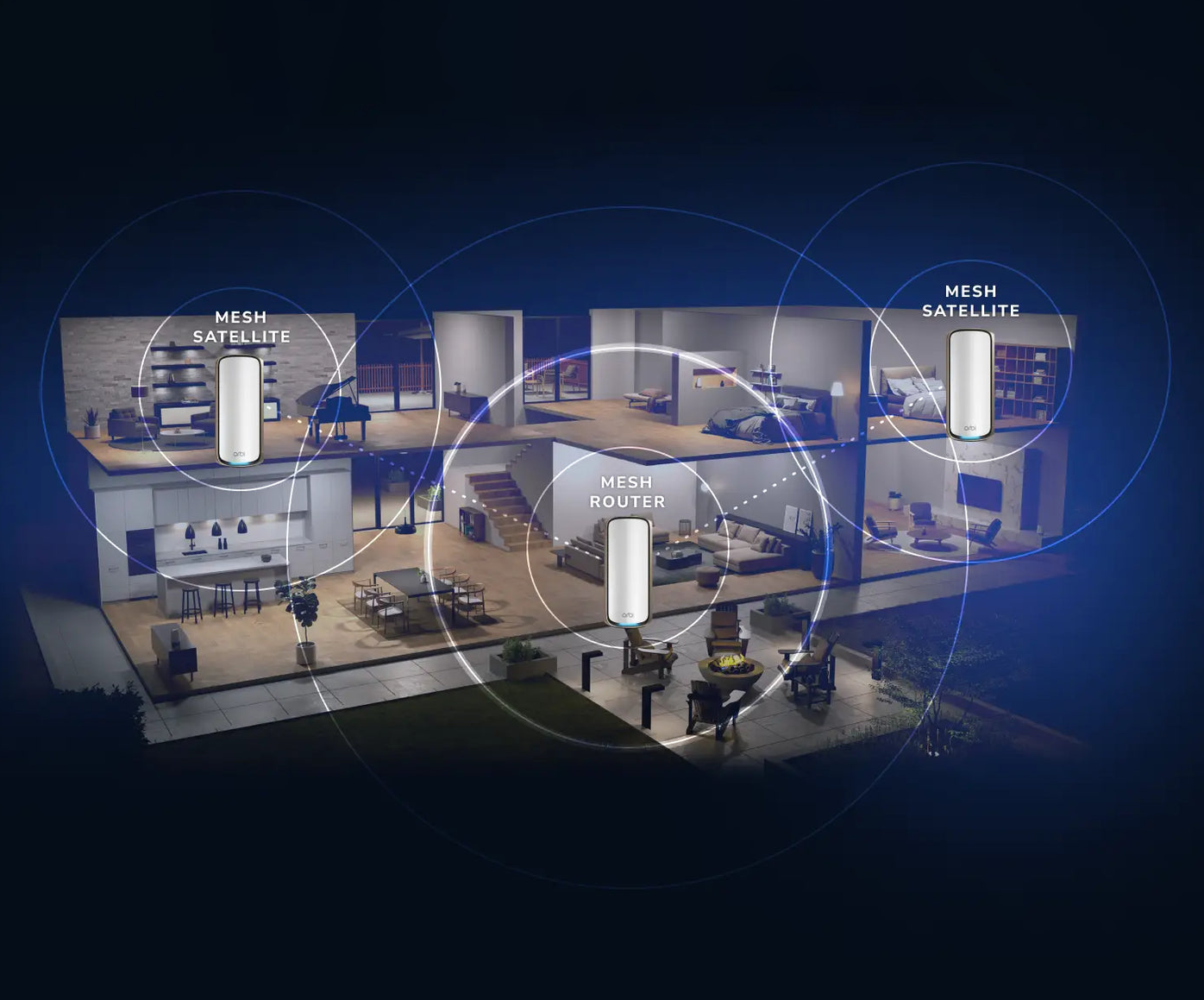 將衛星放置在您需要的任何位置,以應對更大空間,多層,更厚的牆壁或獨特的樓層規劃等挑戰。根據需要添加更多衛星以擴大覆蓋範圍。