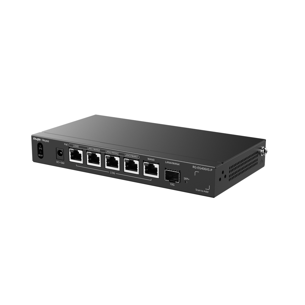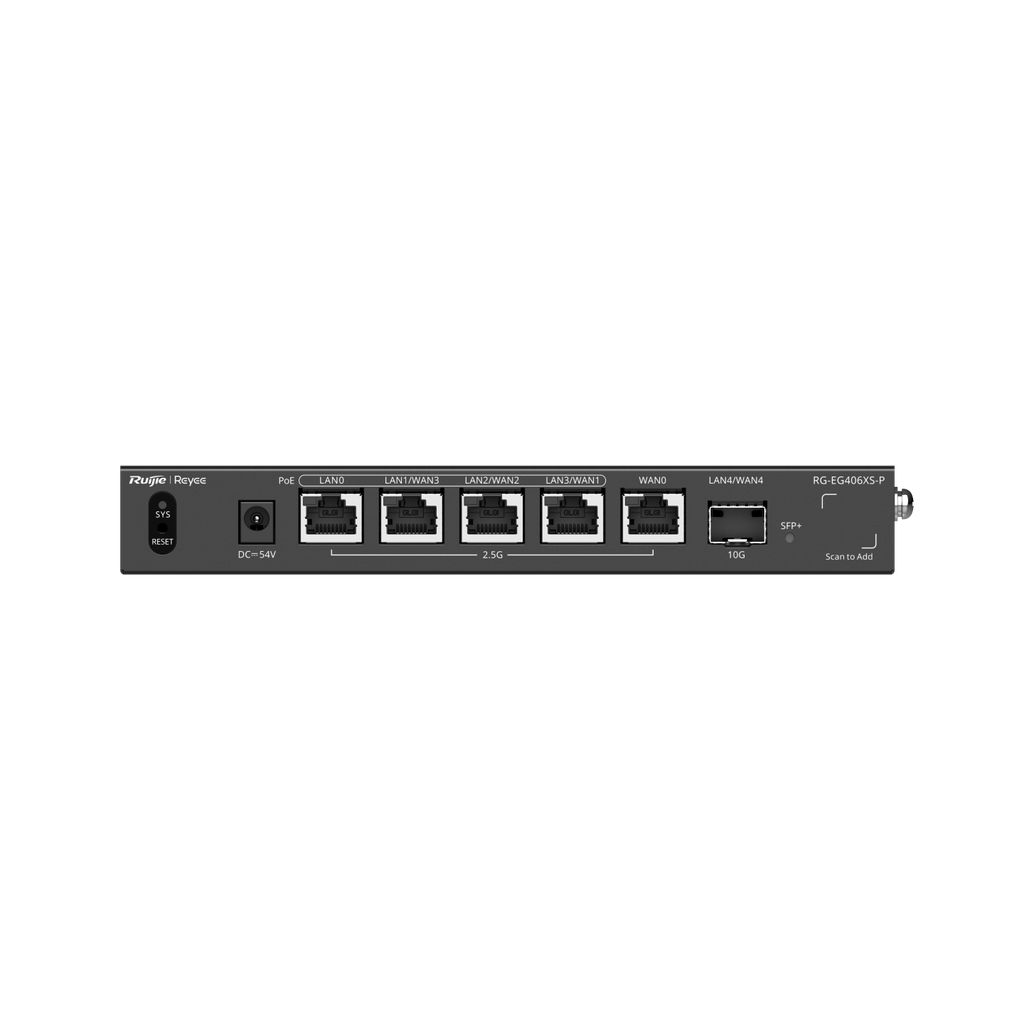 Ruijie | Reyee RG-EG406XS-P | 雲端管理 | 100 VPN Tunnels | 最多支援4個WAN ( Load Balancing) | 2.5Gbps 最大吞吐量 | 5x2.5G (4 x PoE+) @ 110W