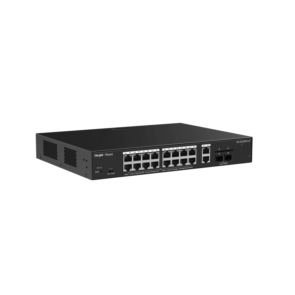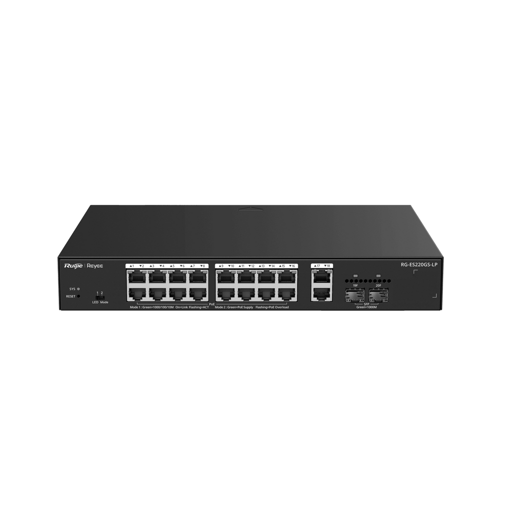 Reyee (RG-ES220GS-LP) 20-Port 雲端管理 PoE+ (130W) 交換機 |16x1G PoE+ | 2x1G | 2xSFP